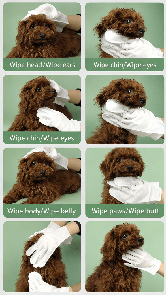 Pet wet wipes dry cleaning gloves are convenient, no-rinse grooming solutions designed for quick and gentle pet cleaning without water. Made from soft, skin-friendly nonwoven material and pre-moistened with mild cleansing formula, these gloves effectively remove dirt, odors, and loose hair while being safe for pets’ skin and fur. Ideal for cats and dogs, especially during travel, outdoor activities, winter seasons, or when bathing is not convenient, pet cleaning gloves provide an easy and hygienic way to keep pets clean and comfortable anytime.